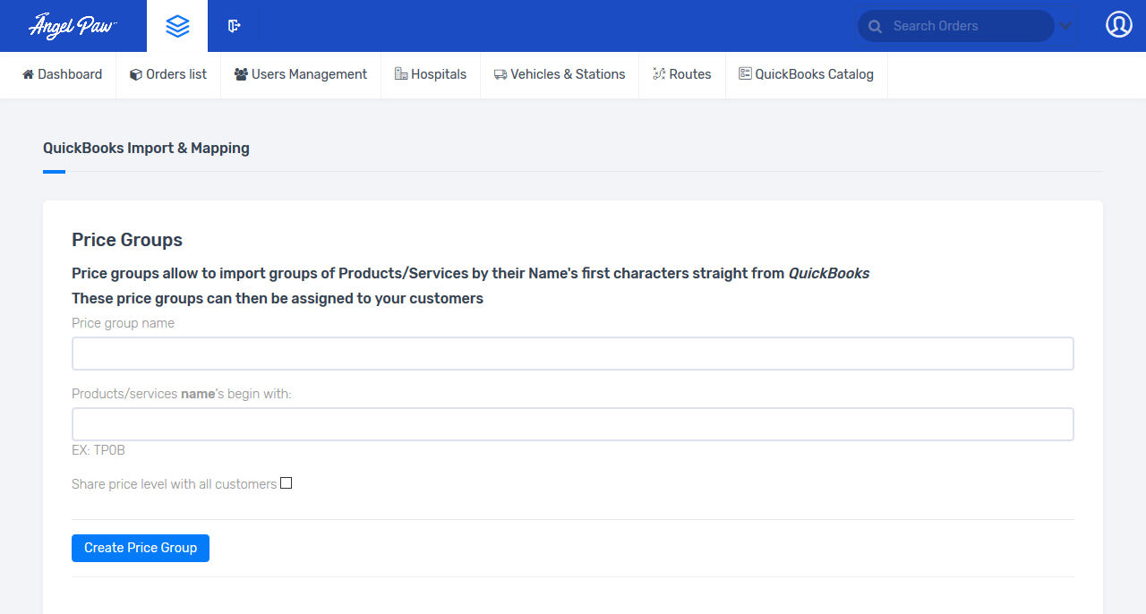 No need to create customers/product/price records on AngelPaw, you may import all of that from QuickBooks